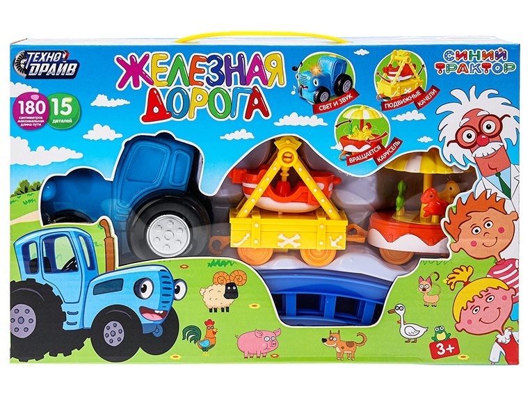 Железная дорога СИНИЙ ТРАКТОР мультяшная длина пути 180 см ТЕХНОДРАЙВ u6808010